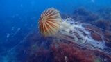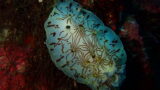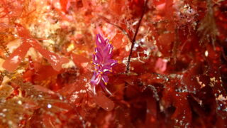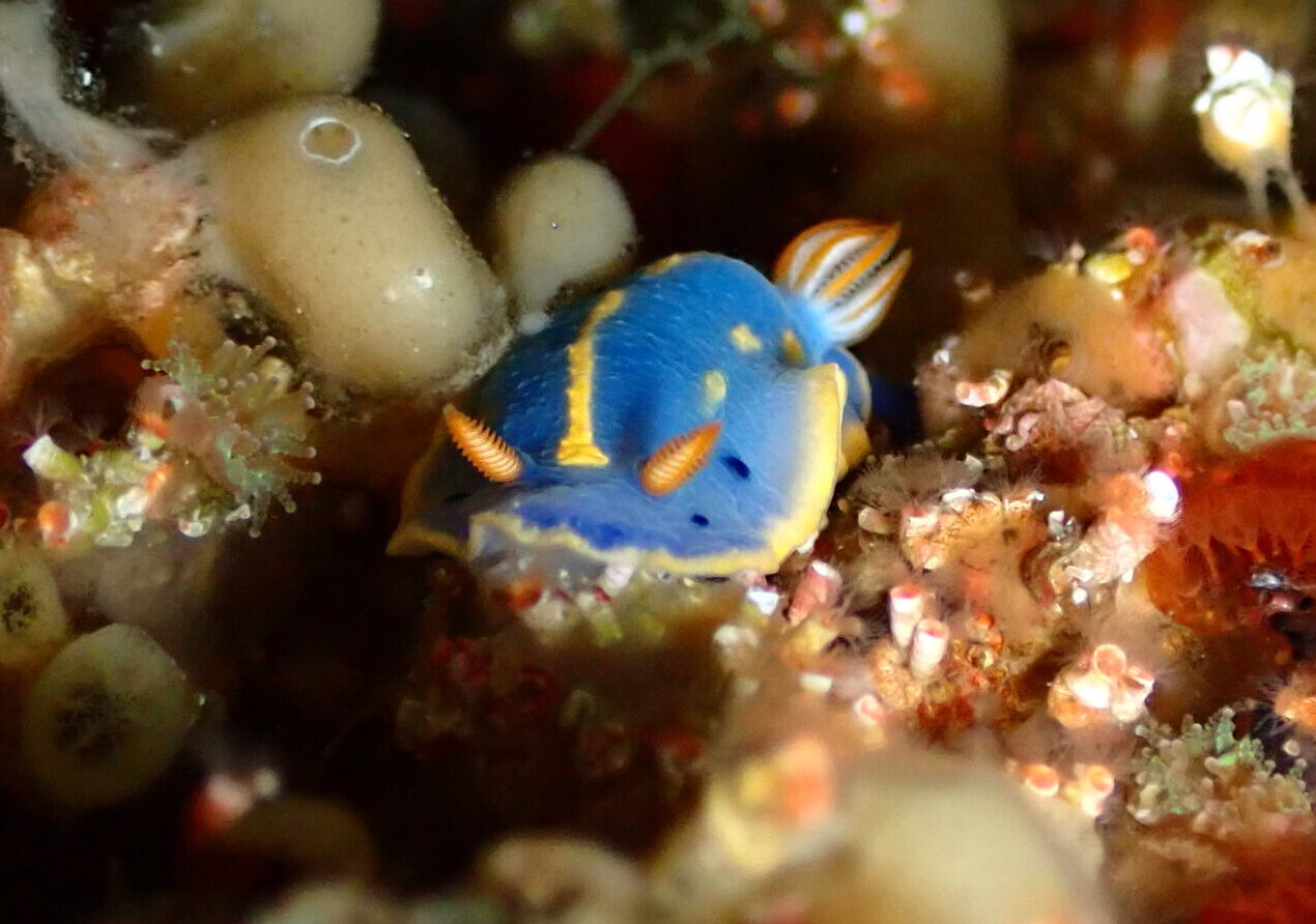 アオウミウシ スキューバダイビング 2026.02.05 大瀬崎のブロックの天井に張り付いていました!ウミウシってワードを聞くと多くの人がアオウミウシを思い浮かべる人が多いんじゃないでしょうか?尻尾のふさふさ(二次鰓)が可愛いですね(*´ω`*)(大瀬崎/ビーチ)